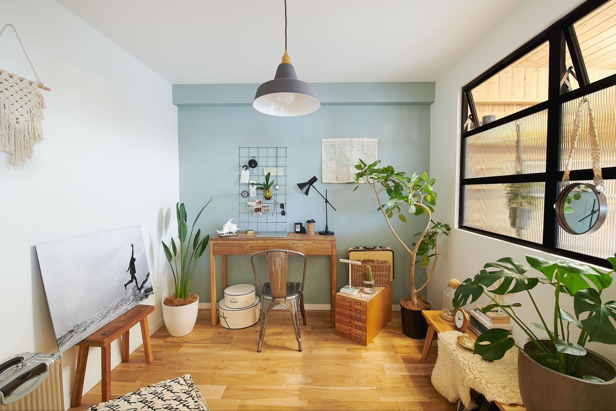 部屋のコーナーに背の高い植物があるだけで、空間の印象がグッと引き締まり、視線が集まる「フォーカルポイント」が生まれます。