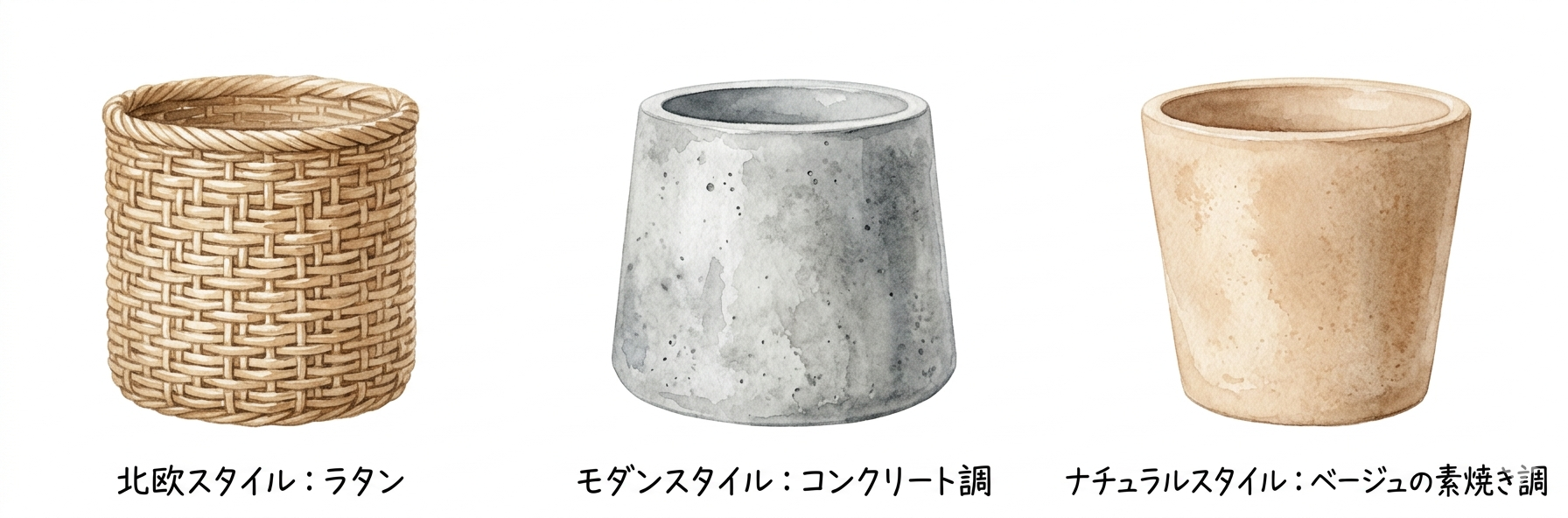 プラスチックの鉢のままではなく、お部屋のテイストに合った鉢カバーを選びましょう。