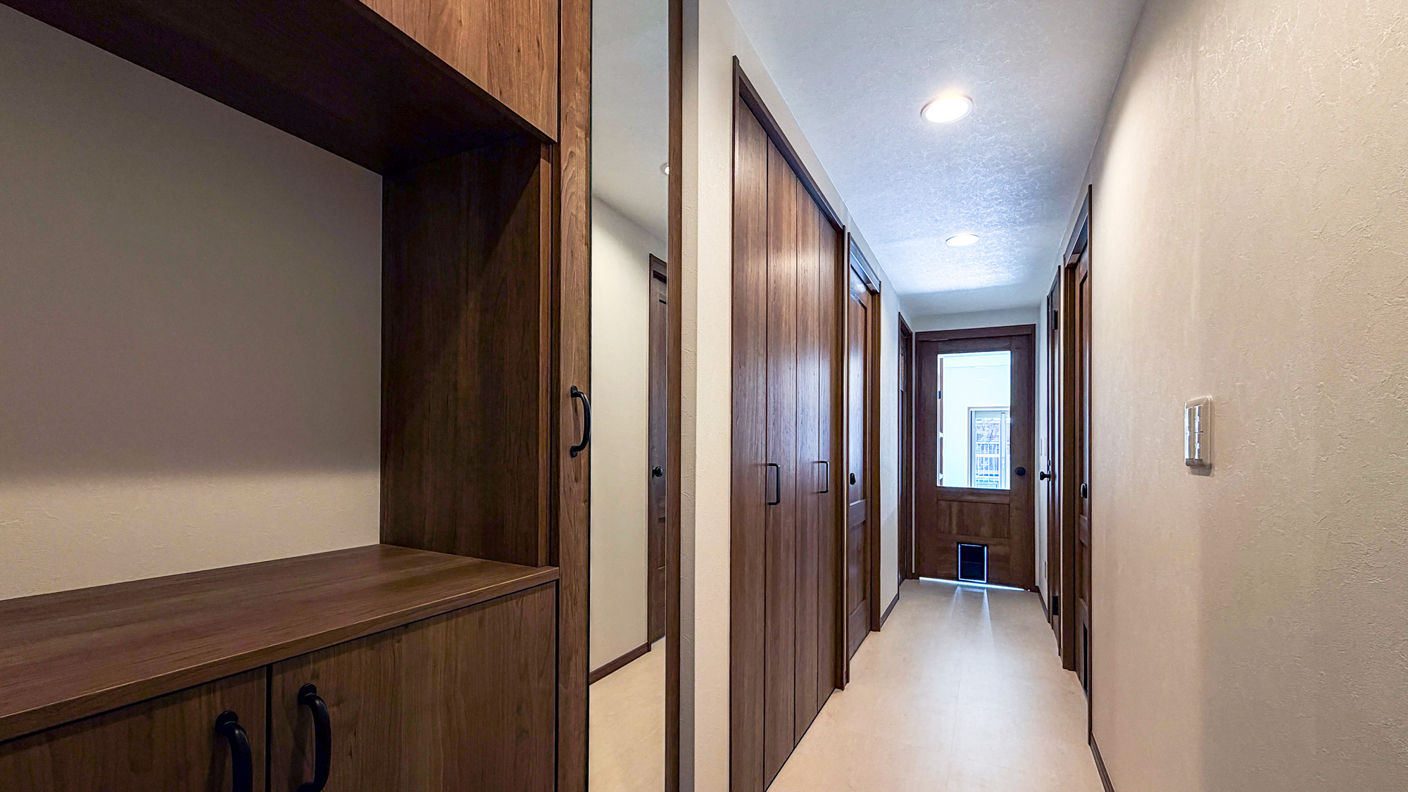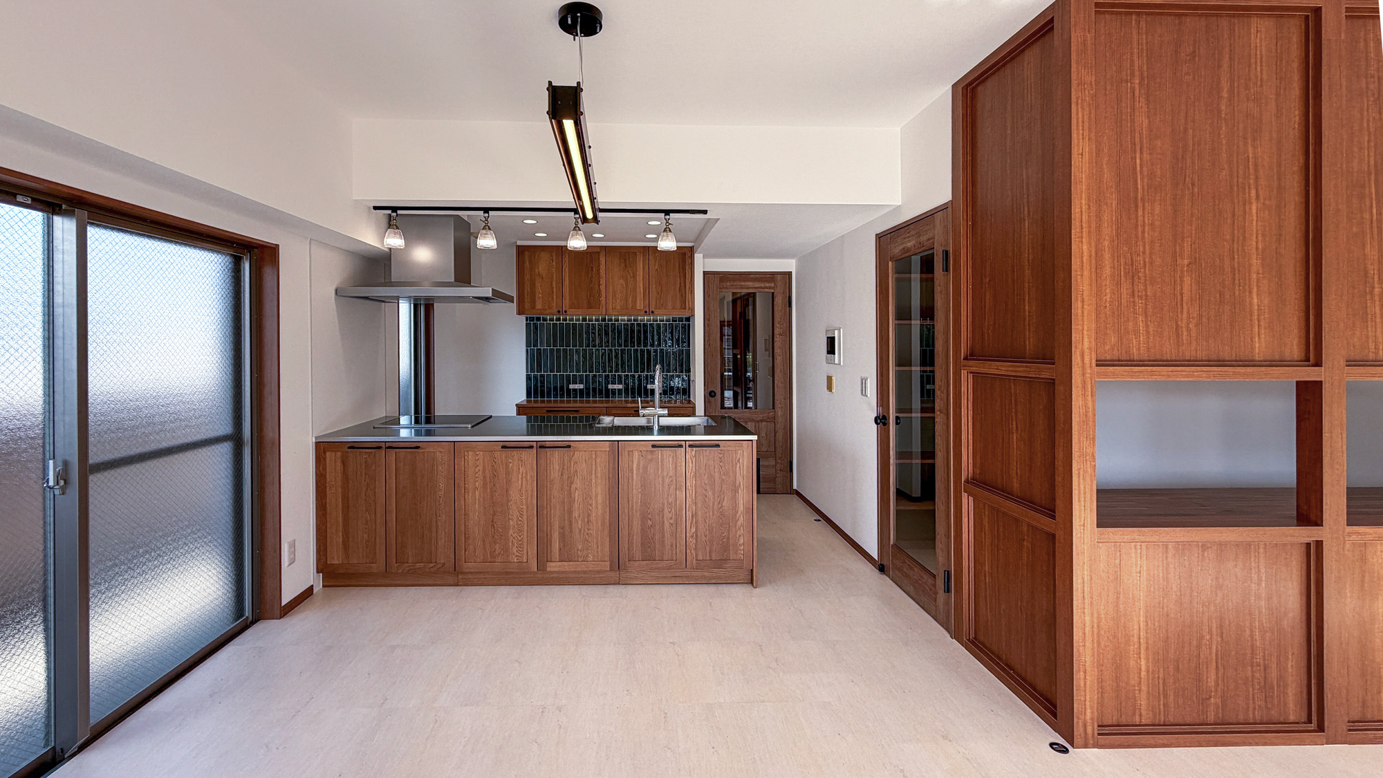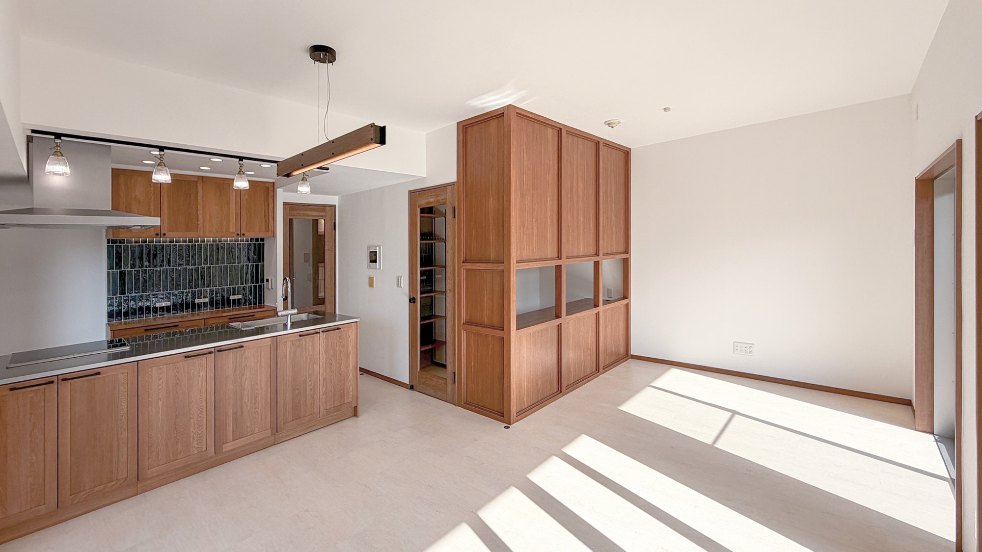 2)木目の造作家具と建具がインテリアデザインの主役