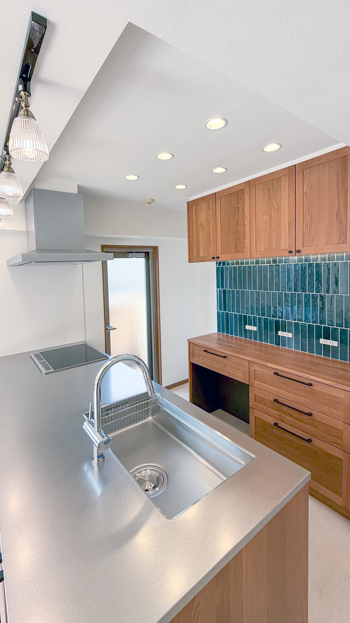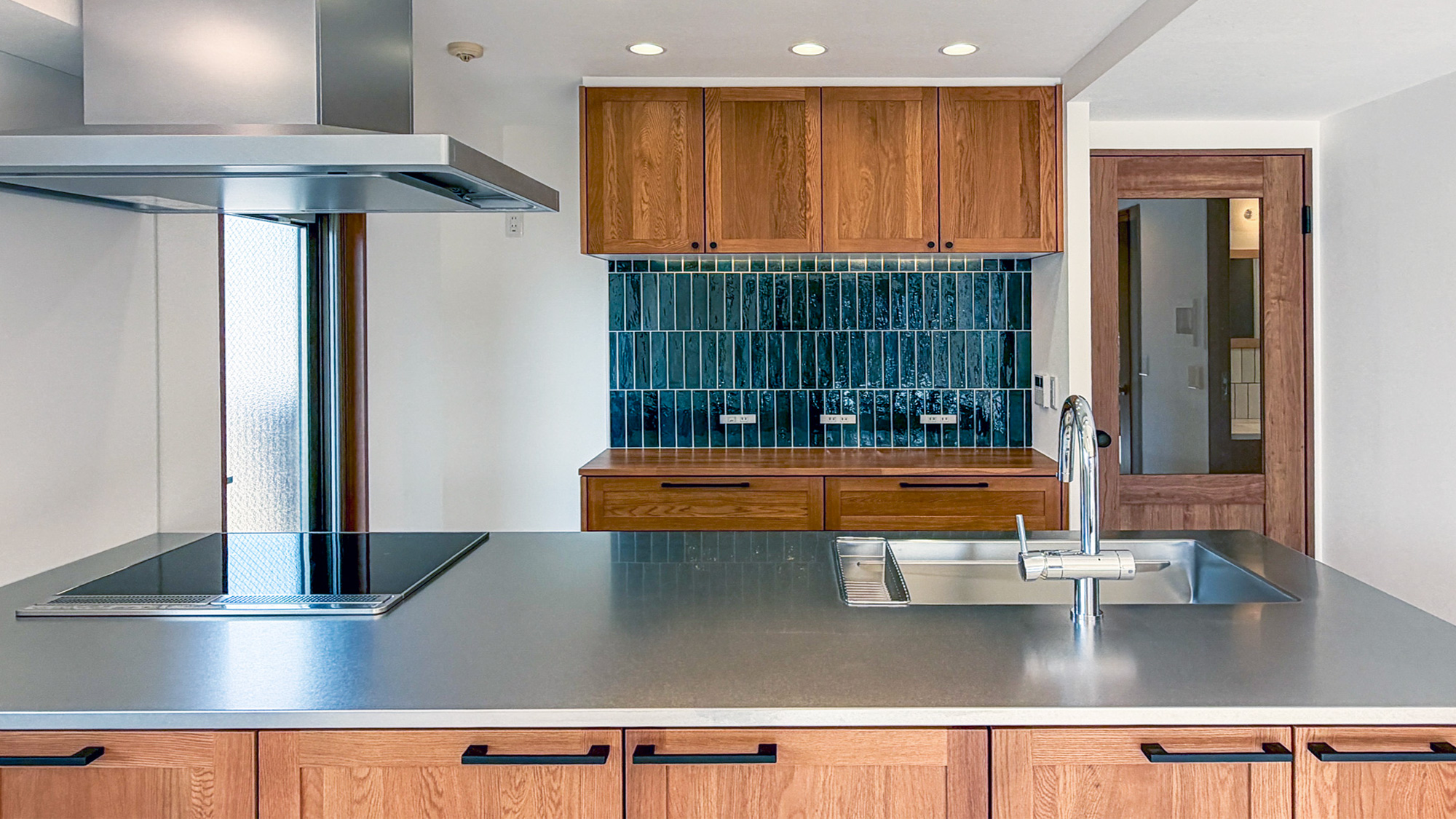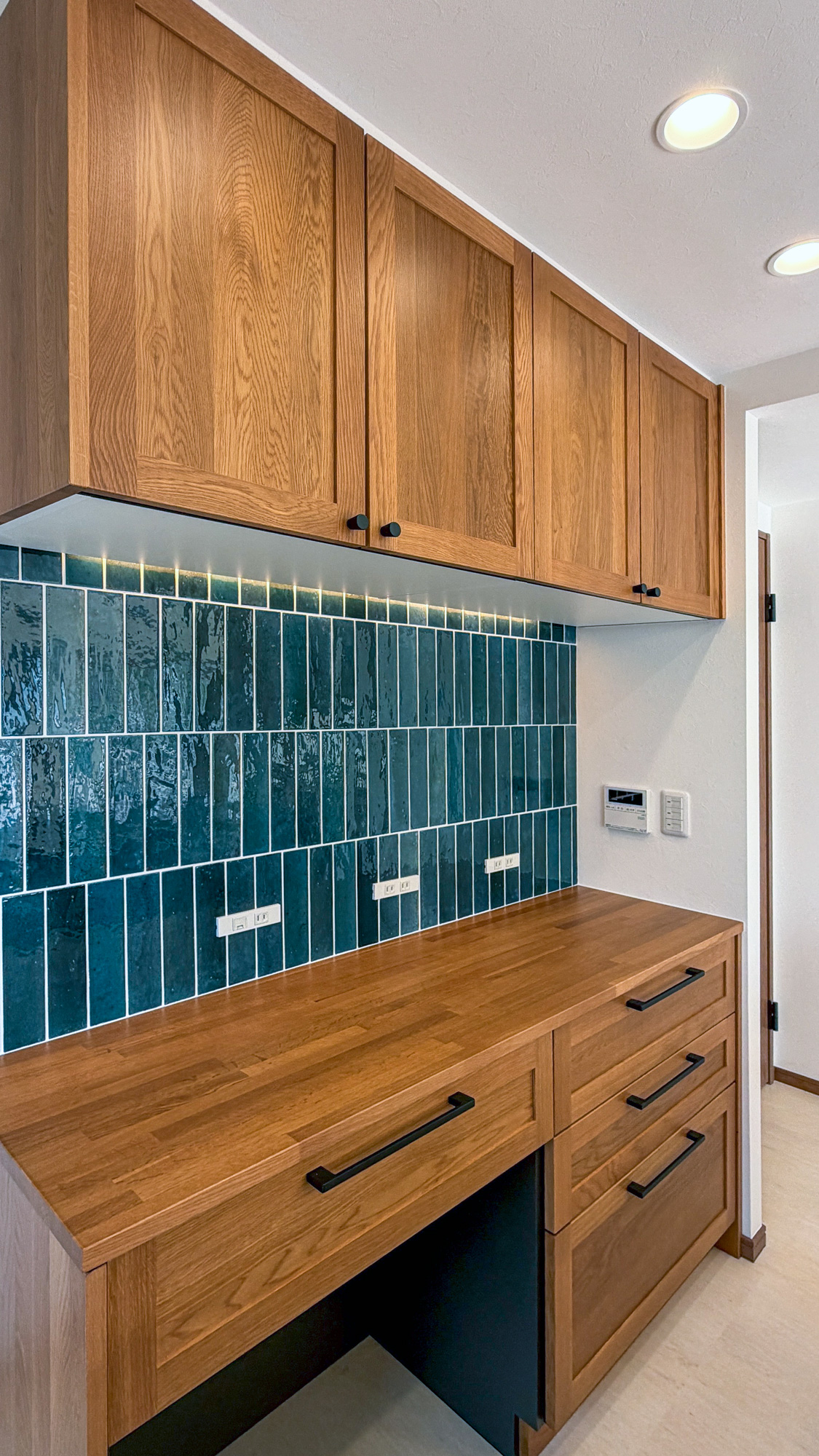 キッチンは開放的なペニンシュラ型へ変更し、背面のタイルや木製キャビネットがインテリアの主役に。窓からルーフテラスへと視線が抜ける開放的な動線は、日々の暮らしにゆとりをもたらします。デザイン性と機能性が高次元で融合した、現代のワークスタイルに寄り添う住まいが完成しました。